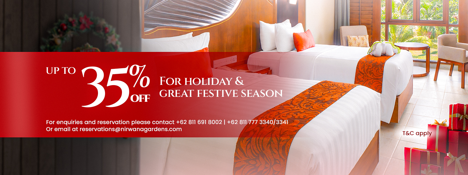 With 330 hectares of land, powdery beaches, and natural landscapes, Nirwana Gardens is a truly complete resort destination. Getting there is easy – via a 55-minute ride on high-speed catamaran from the Tanah Merah Ferry Terminal in Singapore, followed by either our free hotel shuttle bus or private transfer to the resort grounds. There’s an accommodation experience for everyone.