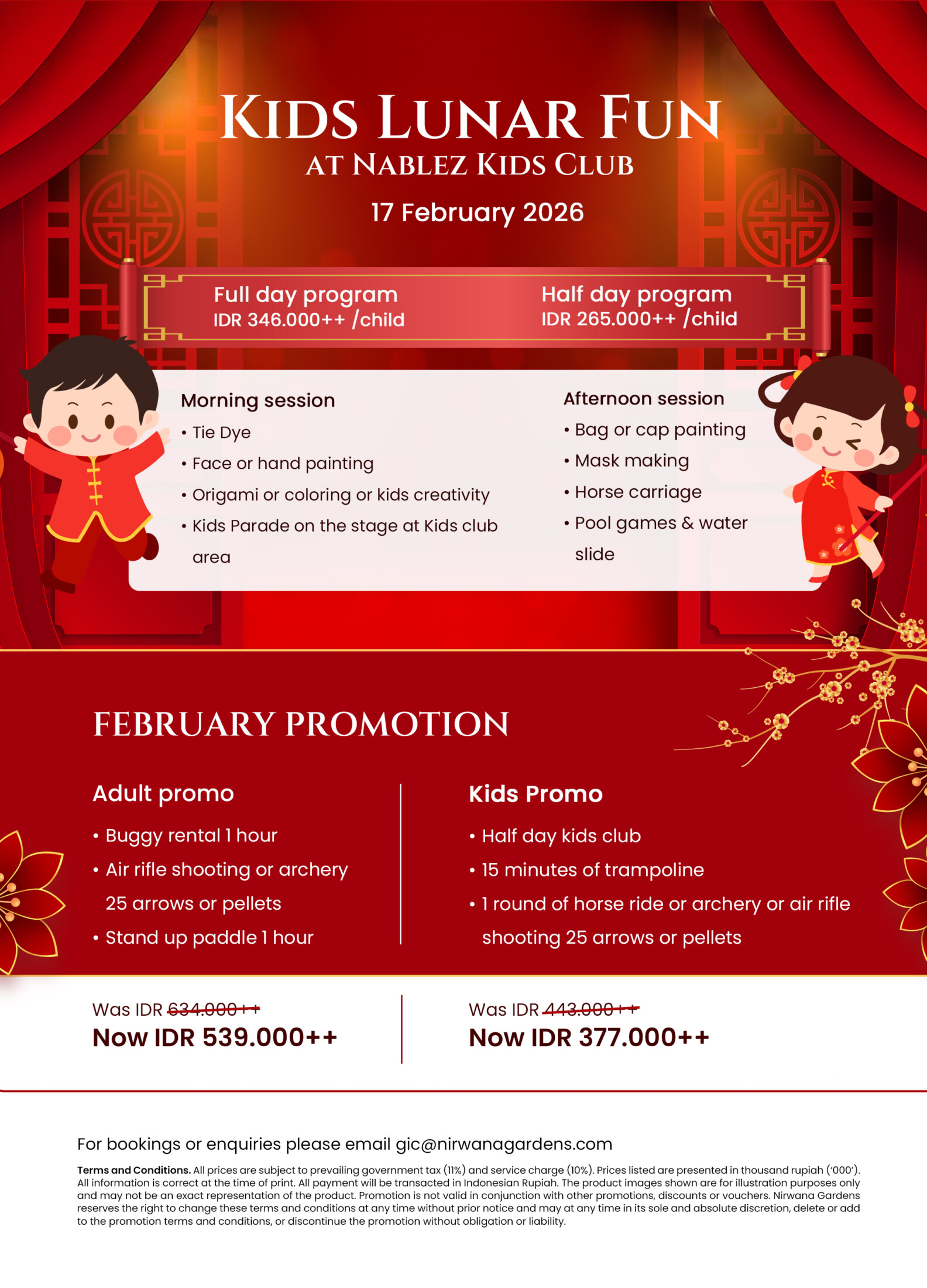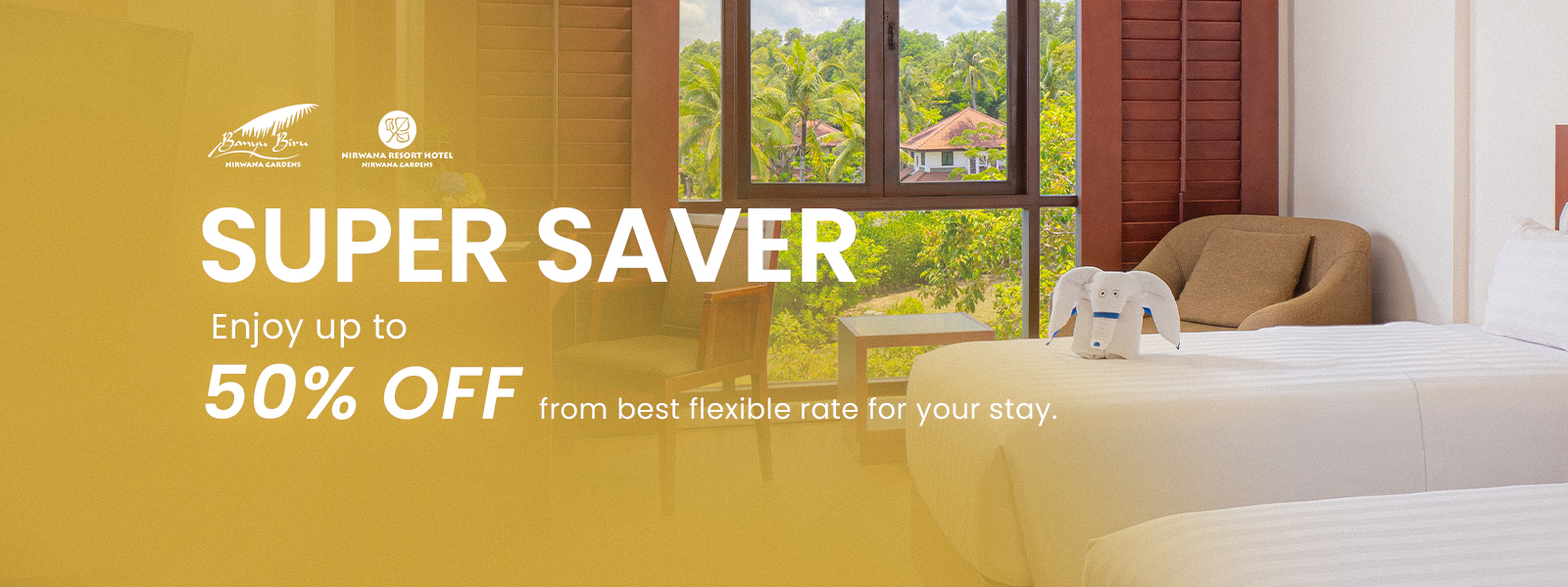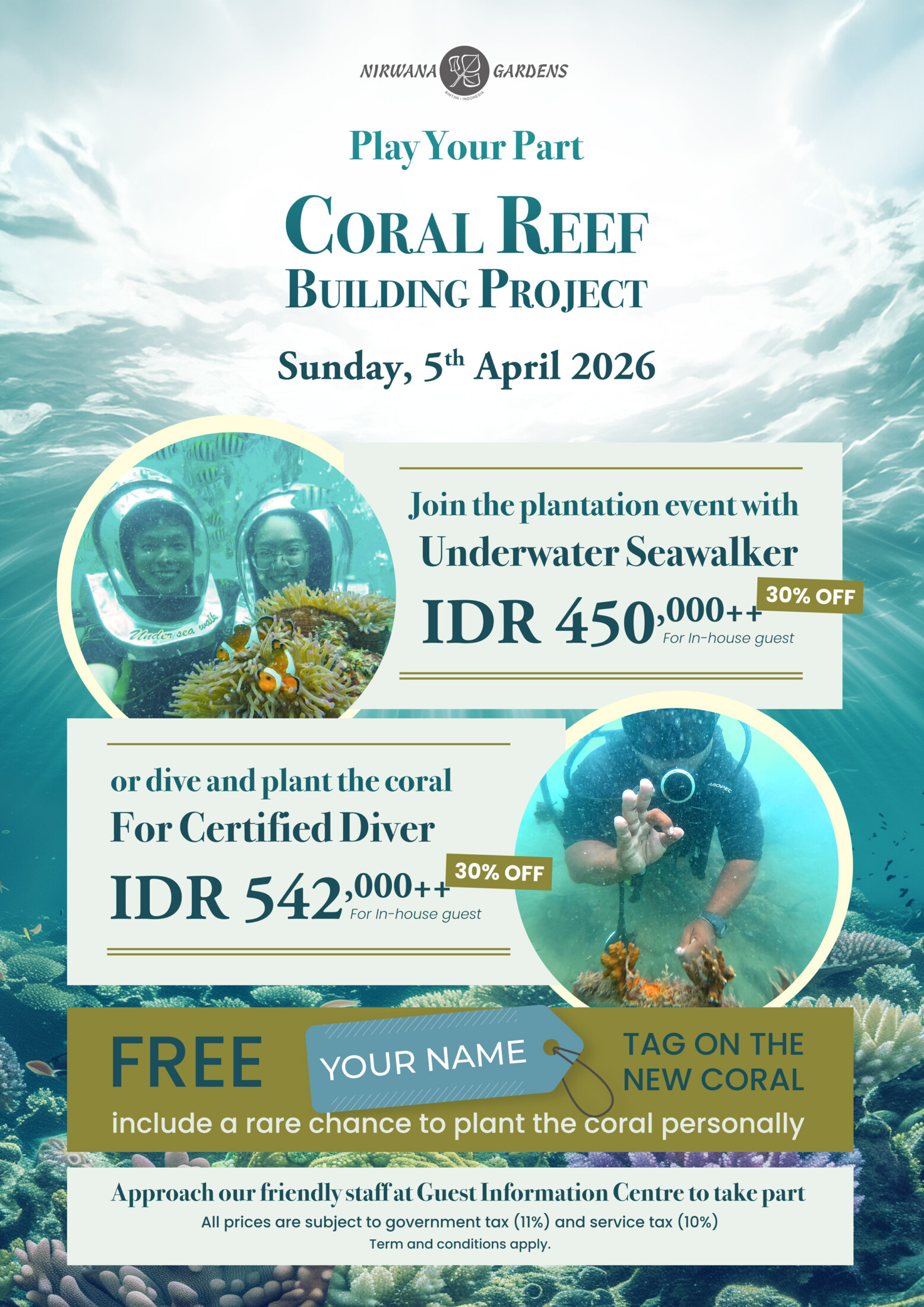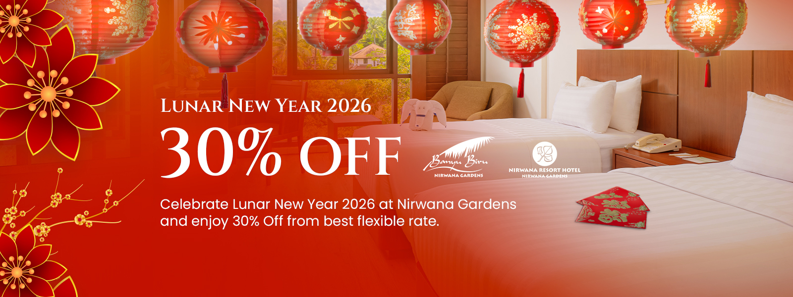 With 330 hectares of land, powdery beaches, and natural landscapes, Nirwana Gardens is a truly complete resort destination. Getting there is easy – via a 55-minute ride on high-speed catamaran from the Tanah Merah Ferry Terminal in Singapore, followed by either our free hotel shuttle bus or private transfer to the resort grounds. There’s an accommodation experience for everyone.