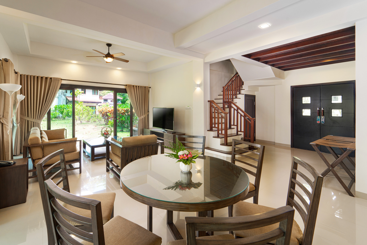 Each double-storey Villa comes complete with a Master bedroom – consisting of a Queen-sized bed and an en-suite bathroom – and two accompanying bedrooms with a common bathroom. The living room and separate dining area greet you on the first level, fully furnished and equipped with modern amenities for the comfort of our guests. In the evenings, relax in the privacy of your own balcony as you enjoy the calm breeze, or grill up a feast on the barbecue pits available for rental. In need of assistance? Our friendly concierge staff are just a call away to look after your every need to ensure you enjoy the ultimate getaway.