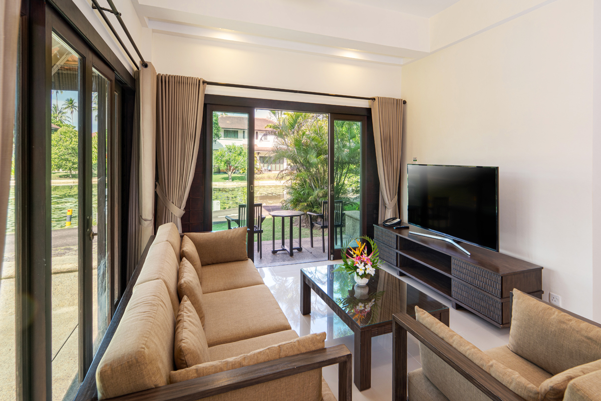 - 起居区配有 60 英寸液晶电视,可收看当地和卫星频道