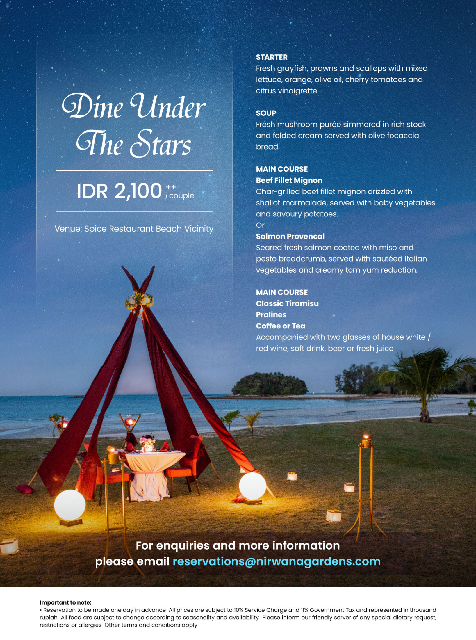 下榻宾客可享受优惠价格,每人 555,000 印尼盾以上!一日游宾客每人 655,000++ 印尼盾以上。