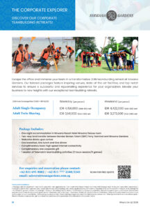 Nirwana Gardens 紧跟全球会展旅游业的发展步伐,时刻准备握紧商机,力求成为休闲和商务旅行领域的中流砥柱。Nirwana Gardens 共有 5 个活动场地,每一处都适合举办未来投资项目商讨会、公司会议和重要会议。 公司联谊会期间,还可以通过视听资源和综合户外培训设施提高团队和个人的技能。